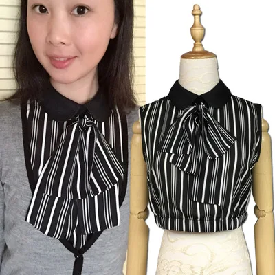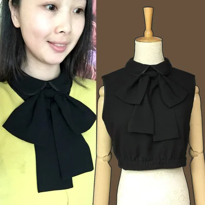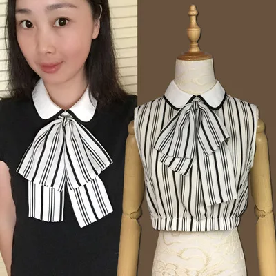 Белая женская блузка со съемным воротником lotus, шифоновая рубашка с фальшивым воротником и бантом