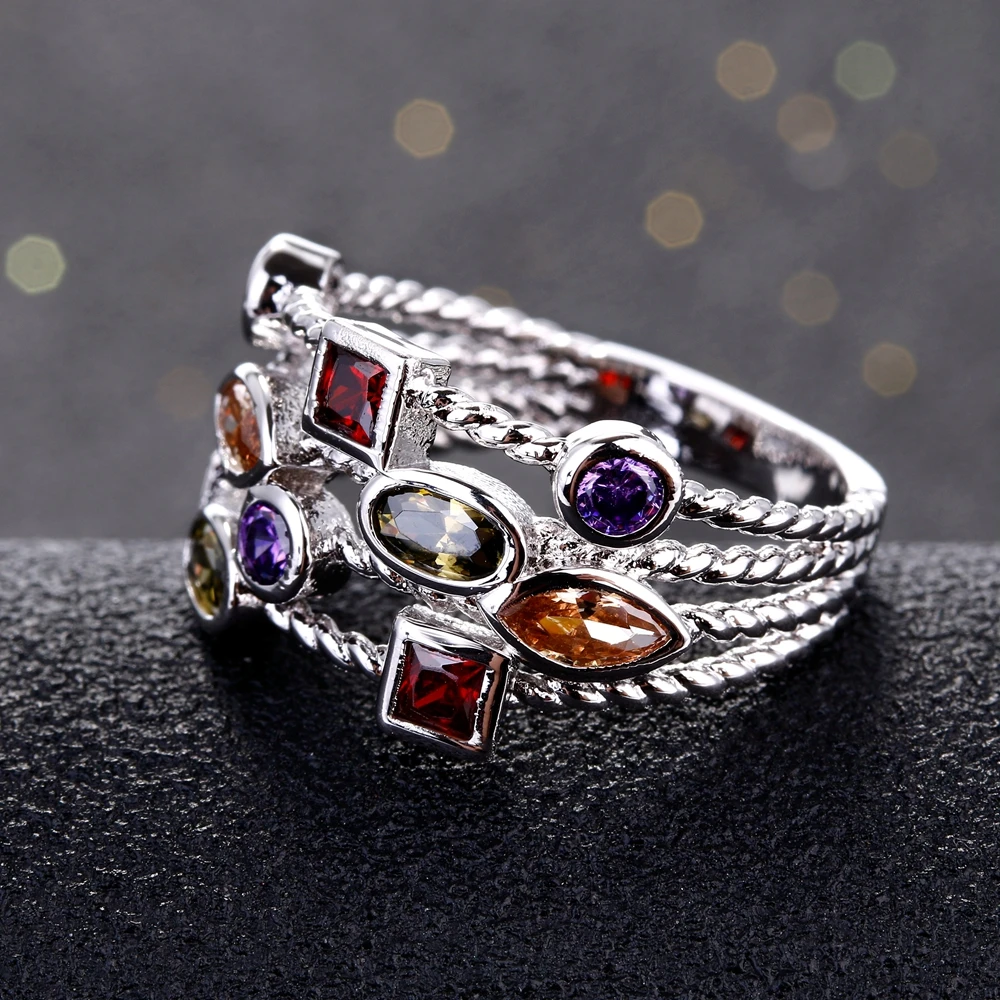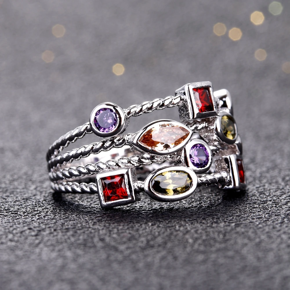 Женское многослойное кольцо из серебра 925 пробы с разноцветным Цирконом