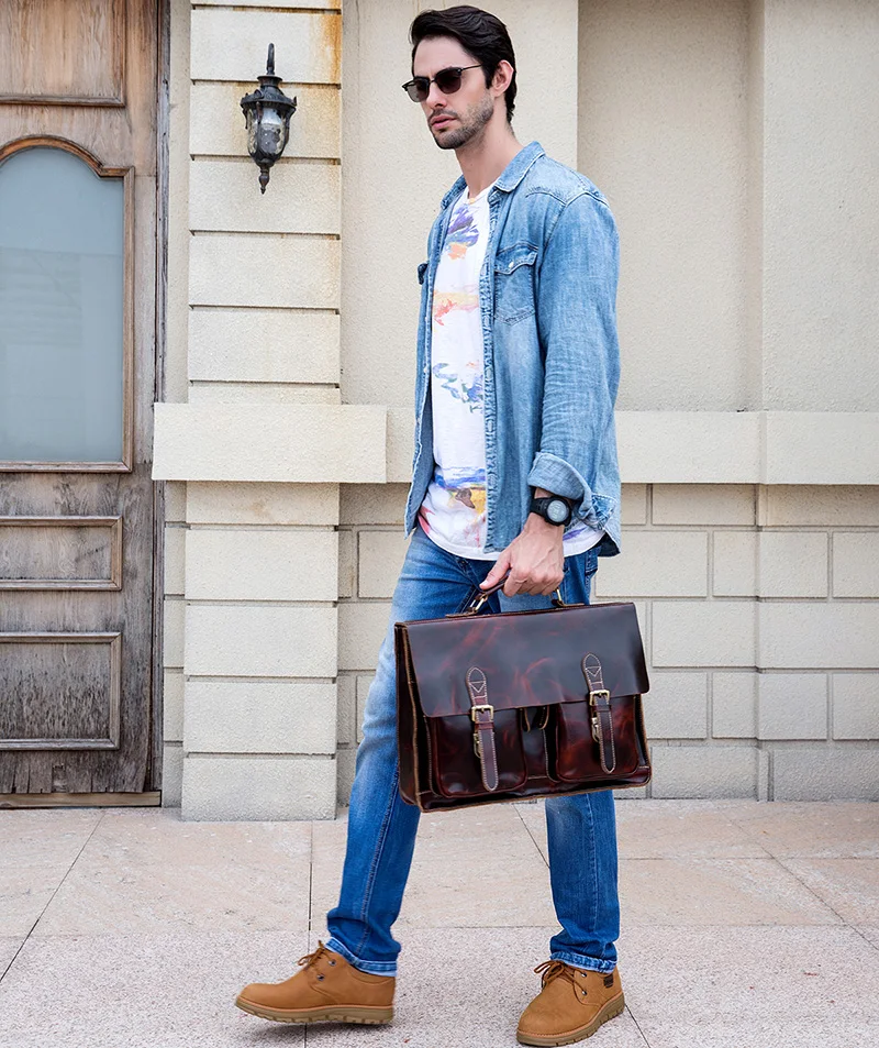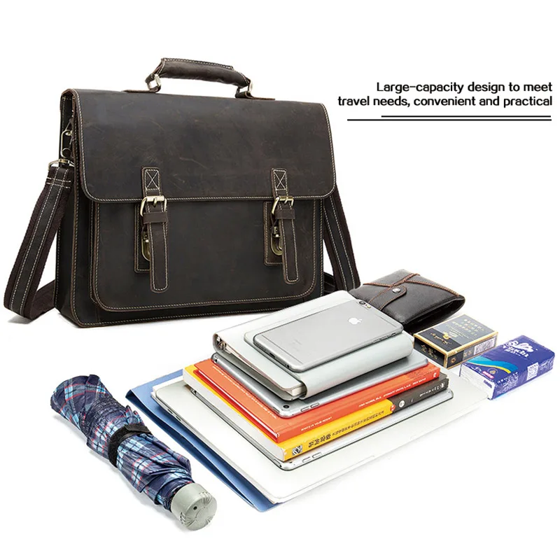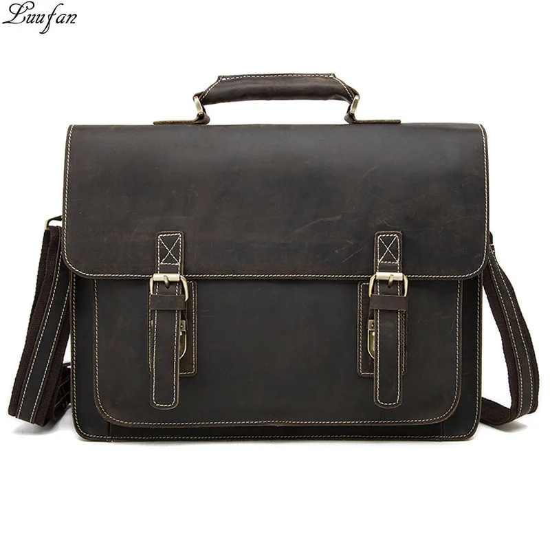 Luufan, Мужская винтажная сумка для ноутбука из натуральной кожи, деловая сумка из коровьей кожи, 15 "PC Crazy Horse, кожаный портфель, мужская сумка-тоут