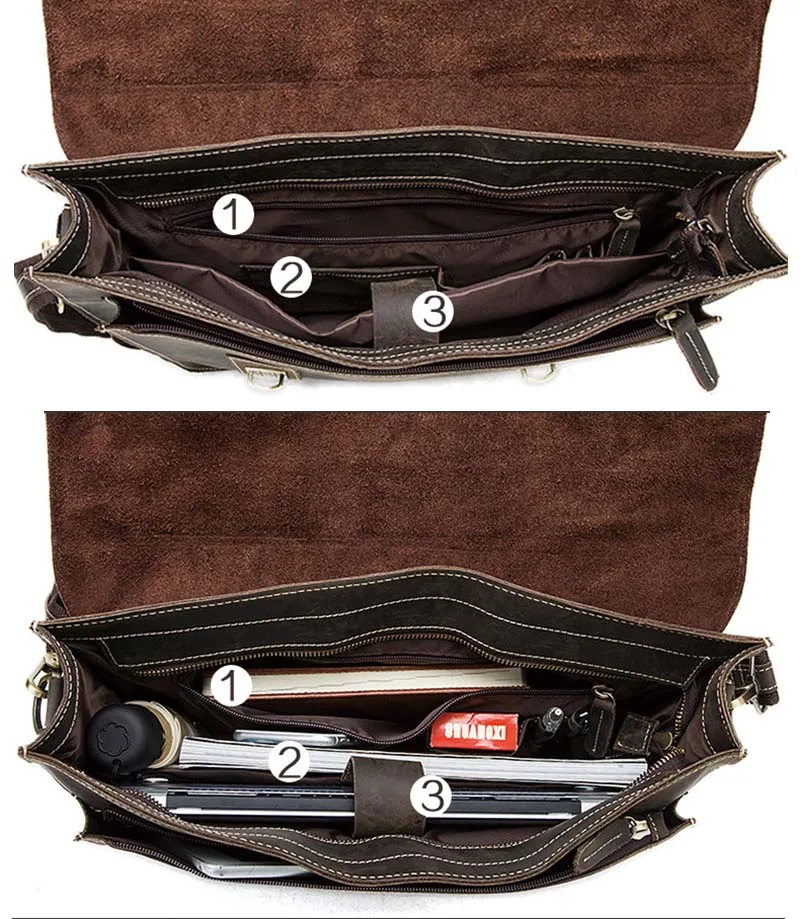 Действительно хорошая сумочка. Толстая жесткая кожа, с бархатной подкладкой и приятным запахом. 1,5-литровая бутылка для воды легко помещается, но раздавливает документы рядом с ней. В целом высококачественный продукт.