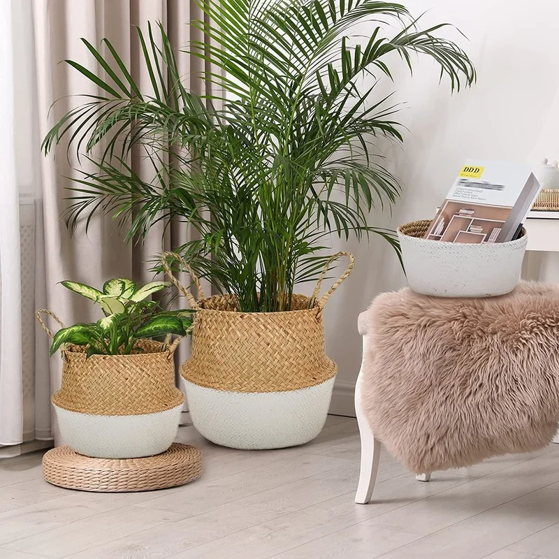 Плетеная корзина для хранения, складная плетеная корзина из ротанга для морских водорослей, держатель для цветочного горшка, домашний декор для хранения, для пикника, продуктов