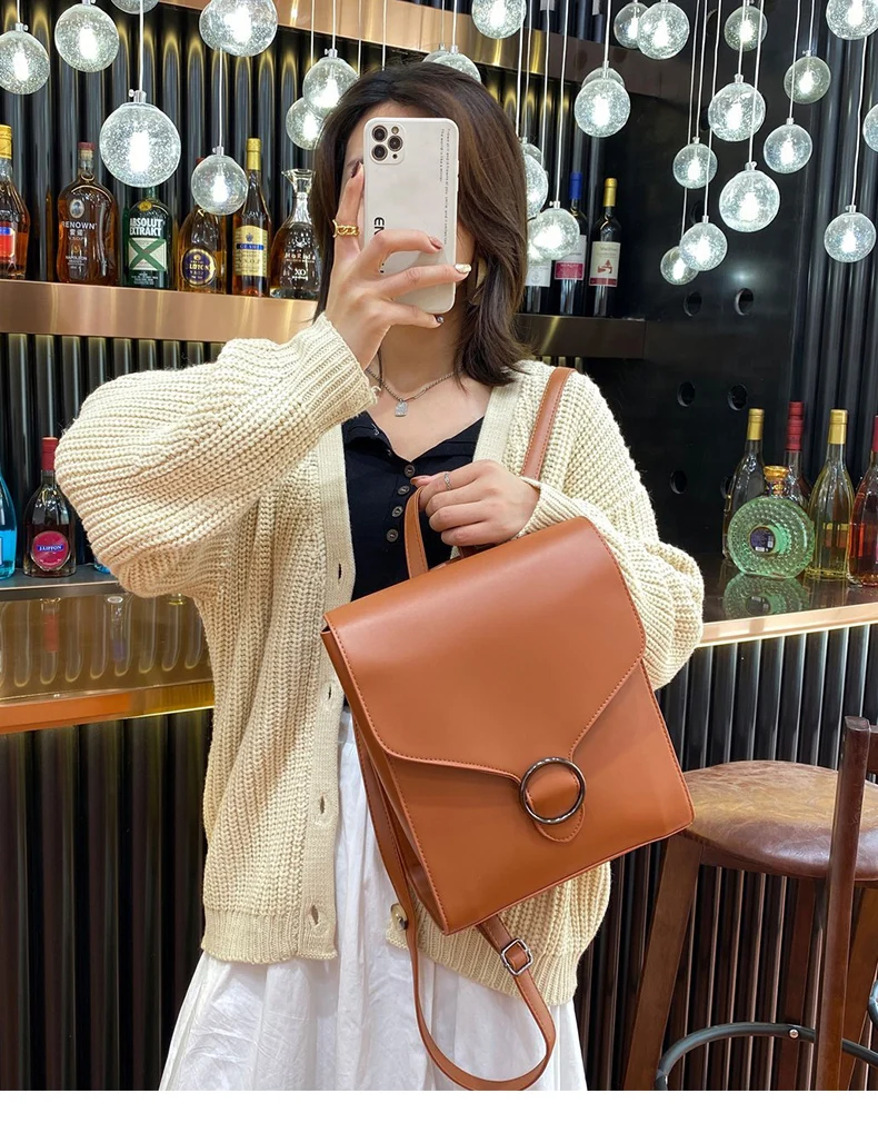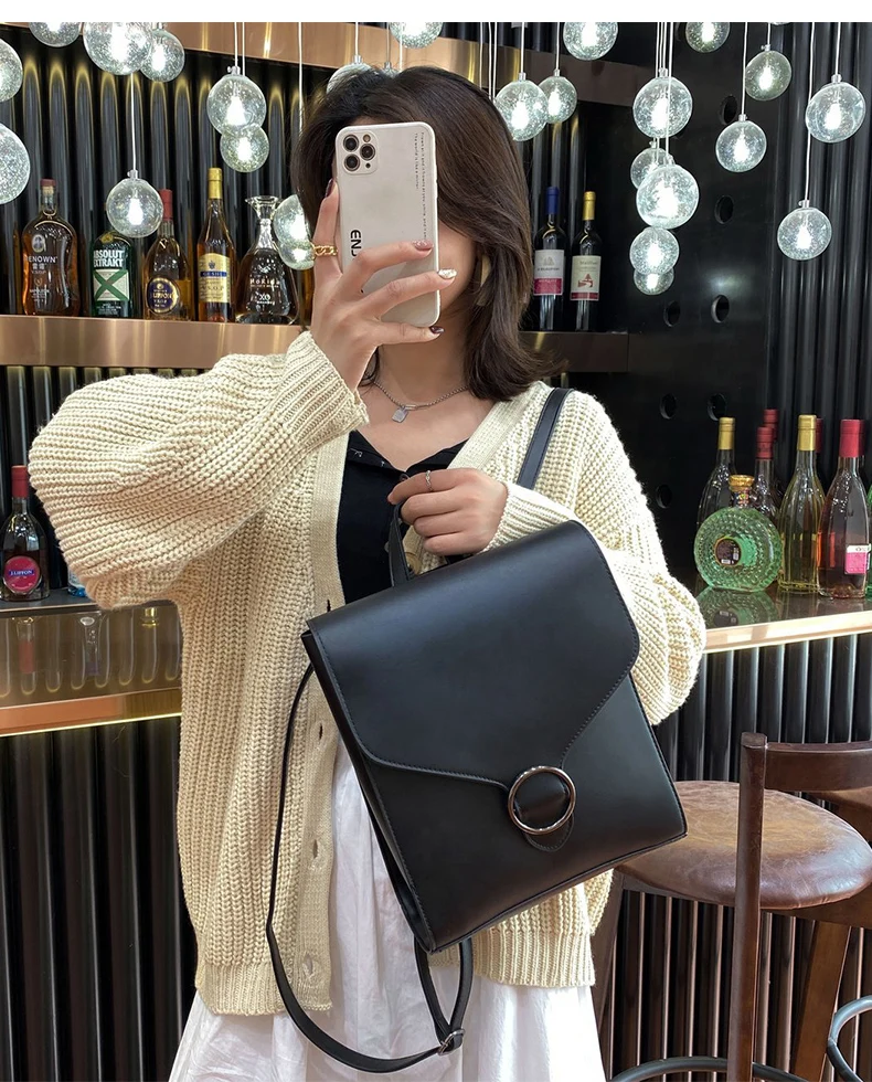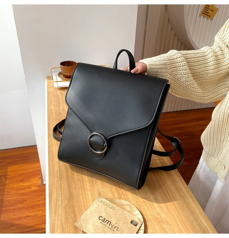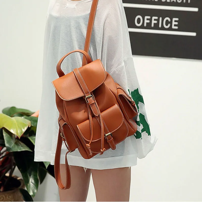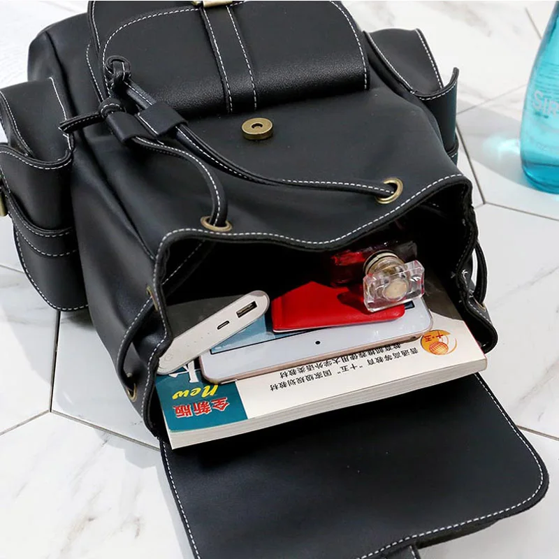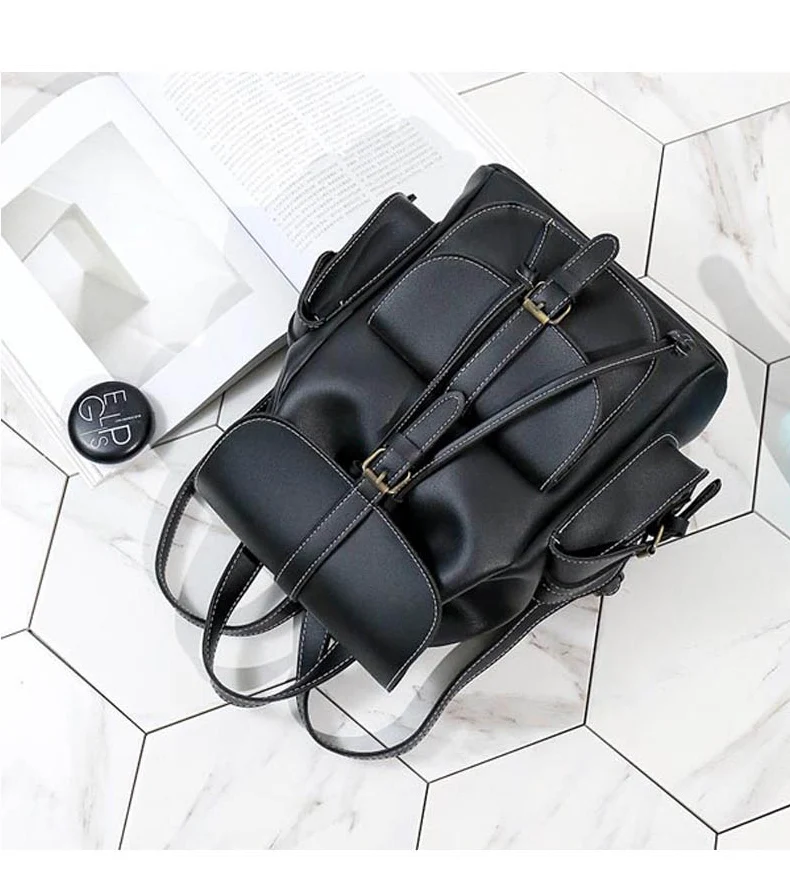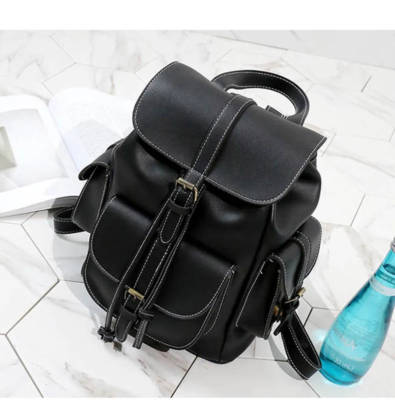Женский рюкзак из искусственной кожи, с завязками, школьная сумка черного цвета, XA1179H, 2021