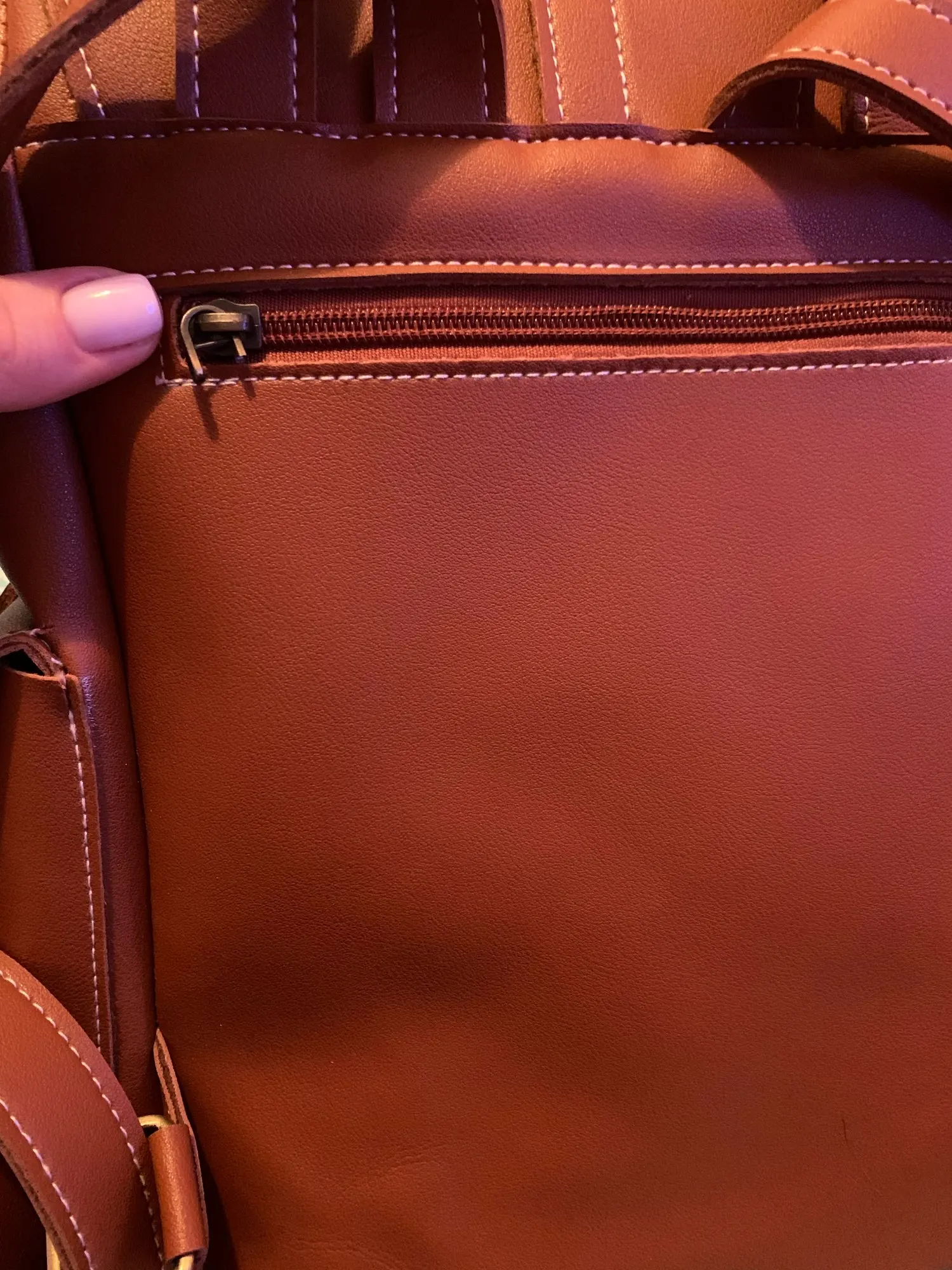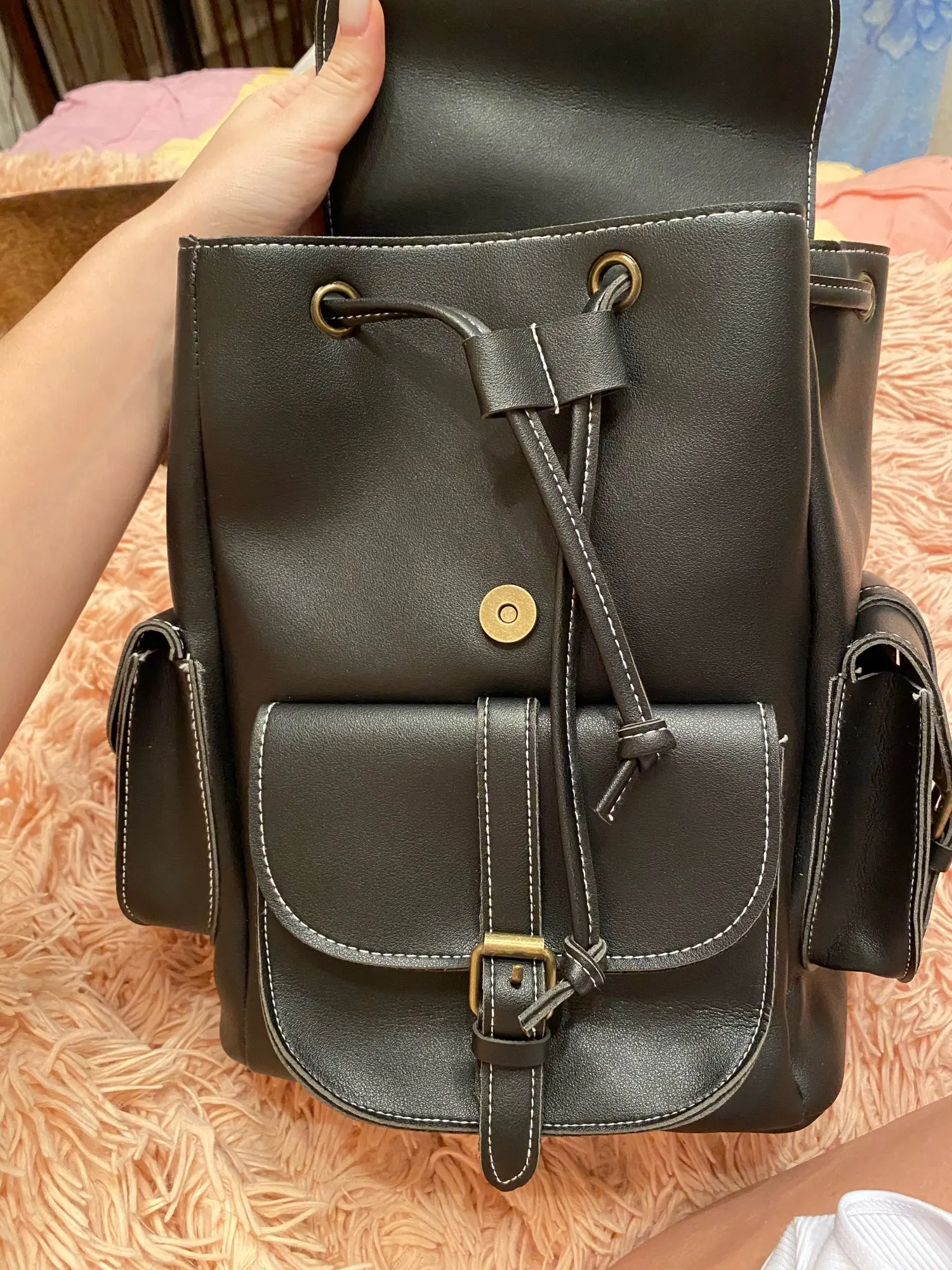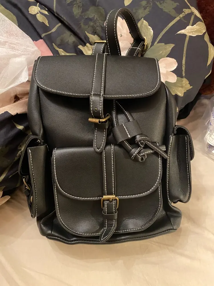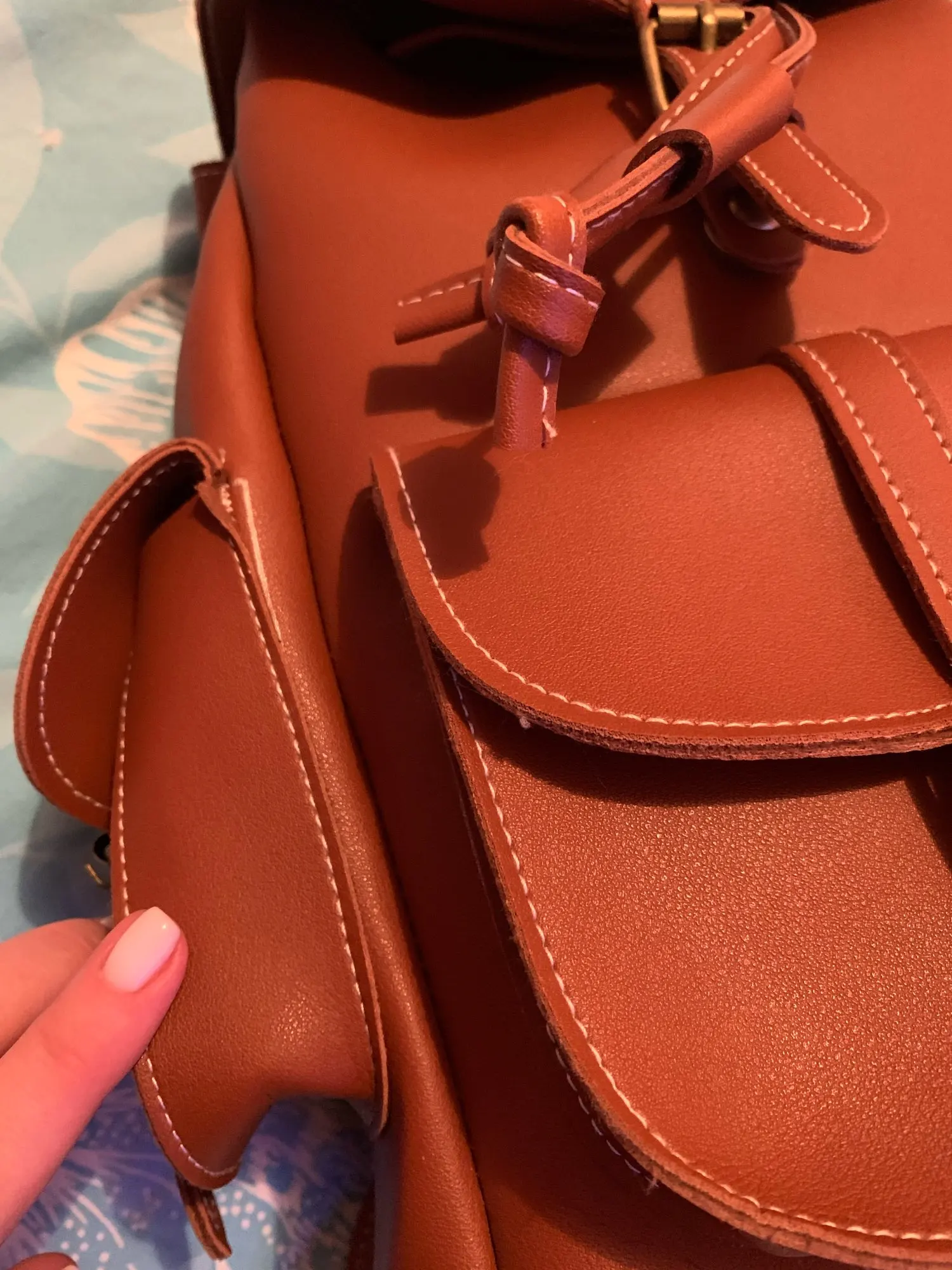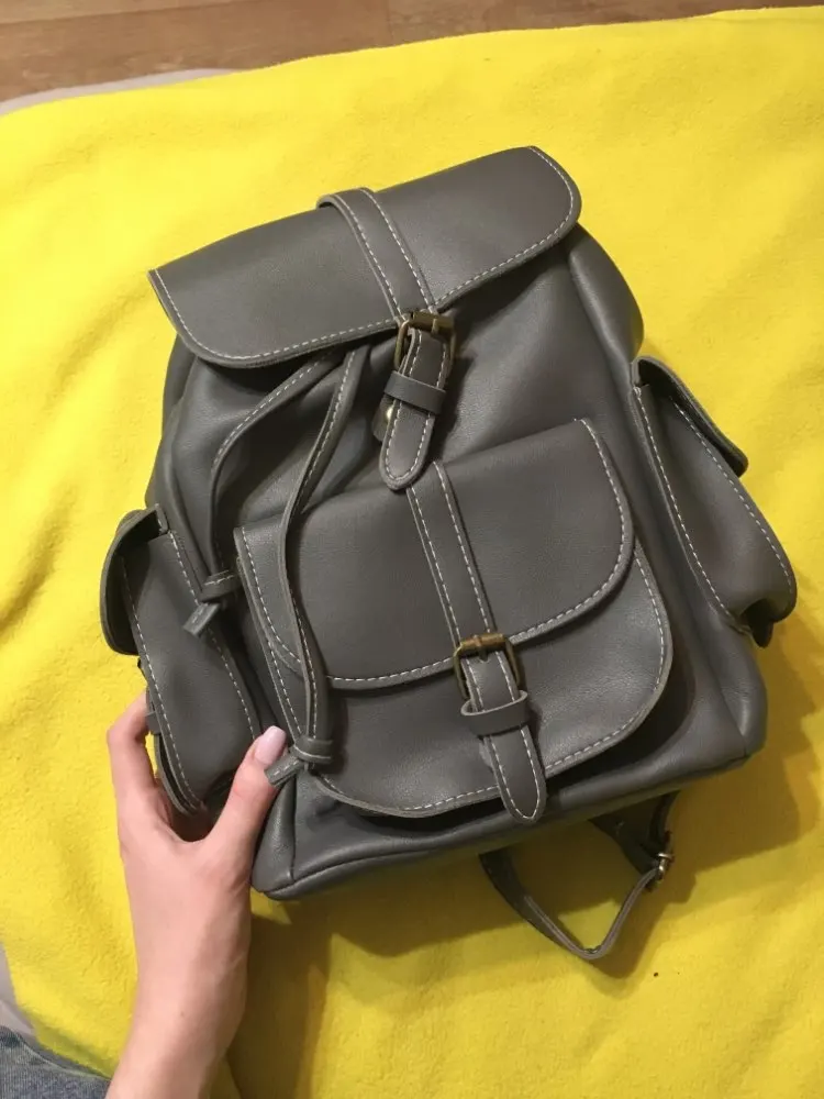 Отличный рюкзак! Продавец отправил оч быстро-на след день. Все как на фото: внутри много маленьких карманов. Единственное, что видны кое где следы от маркера (разметка для того чтобы пришить внешние карманы, видимо). Стильный, надеюсь прослужит подольше