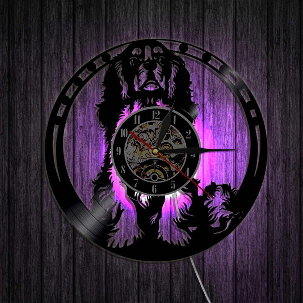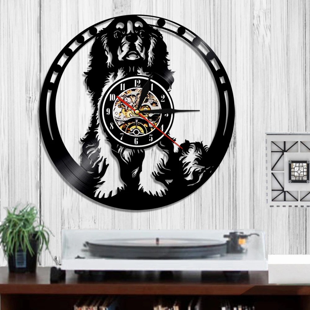 Кавалер Кинг чарльз спаниель собака 3D настенные часы виниловая Запись часы щенок Ainmal художественный Декор стены подарок для любимого питомца