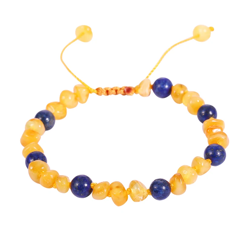 Браслеты HAOHUPO для женщин, из натурального медового янтаря, браслет из лазурита, Балтийского янтаря, регулируемые детские украшения