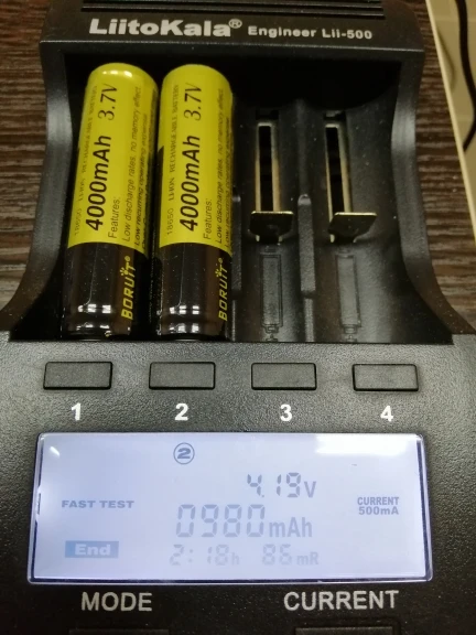 Сам фонарь хорош. Светит достаточно ярко. Смотрится не плохо. Что не понравилось: хлипкое крепление угла наклона, даже в обычном положении фонарь болтается. Акумы что были в комплекте на тесте ёмкости показали 1000 mah ( вместо заявленных 4000 mah) из за этого и ставлю три звезды. К покупке рекомендую. Но без акумов.