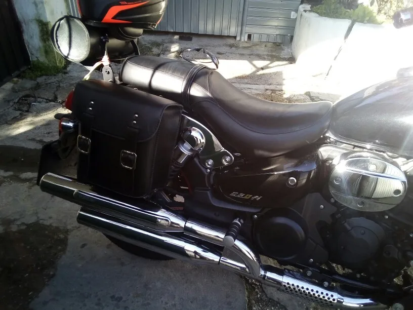 Добротные сумки. Кожзам толстый. Веревка для сшивания сумок вместе хлипковата, лучше бы паракорд дожили. Привез курьер прямо домой. Брал для Bajaj Boxer.