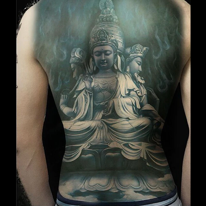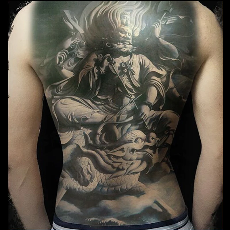 Большая поддельная переводная Временная тату-наклейка, 3D черная боди-арт на всю спинку, на груди, на Хэллоуин, большой размер 18,9*13,4 дюйма