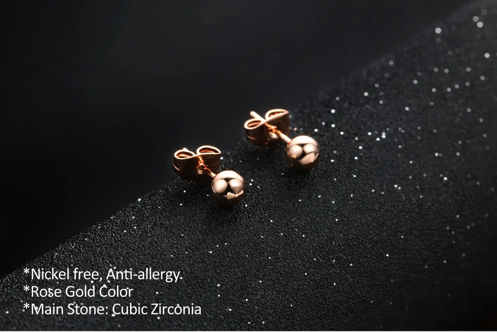 Простые элегантные круглые металлические серьги-гвоздики цвета розового золота для женщин и девушек, оптовая продажа, модные ювелирные изделия DWE422