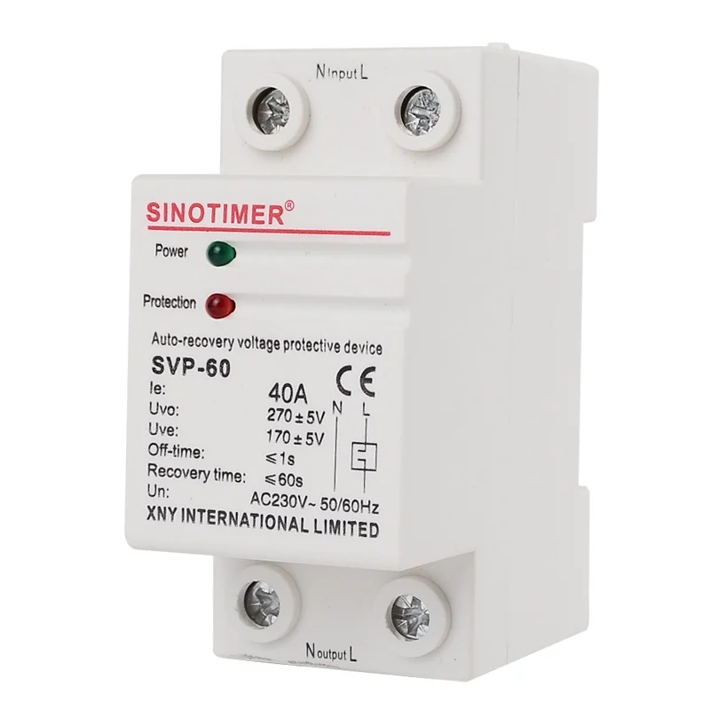 Реле повышенного напряжения, 230 В переменного тока, 40 А, Din-рейка, автоматическое восстановление, защитное устройство Предохранитель Защита от перенапряжения