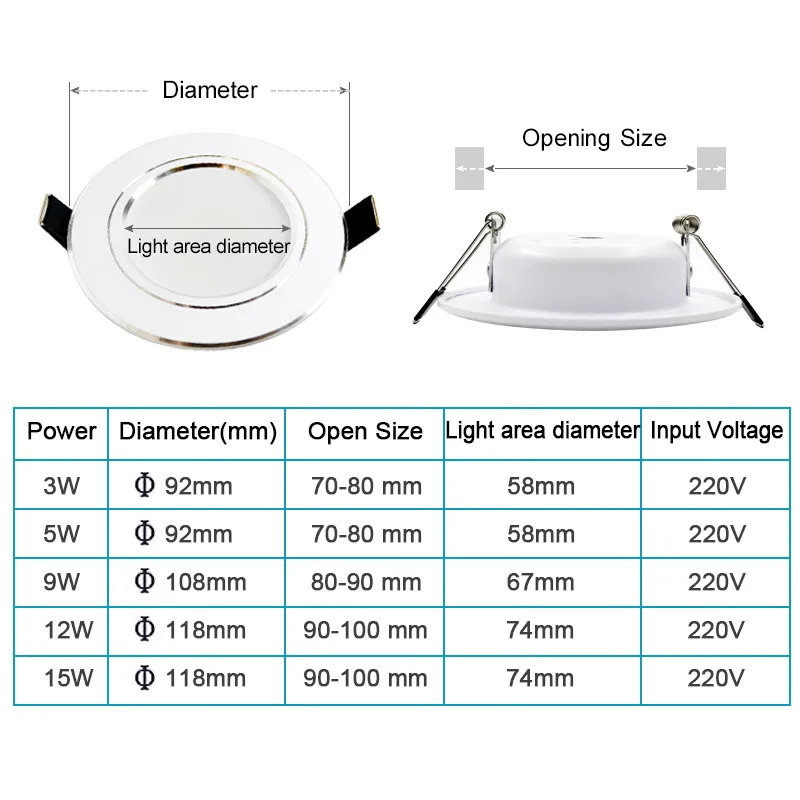 Светодиодный точечный светильник 9 Вт, 12 Вт, 15 Вт, 5 Вт, 220 В, 230 В, с регулируемой яркостью