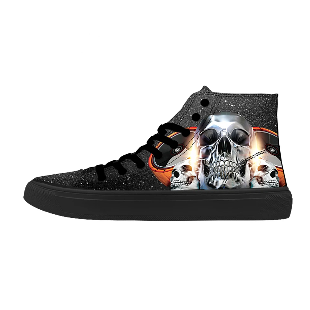 Туфли мужские с высоким верхом и 3D-принтом черепа, классические, холщовые, для первый танцев, Повседневная Уличная обувь, черные