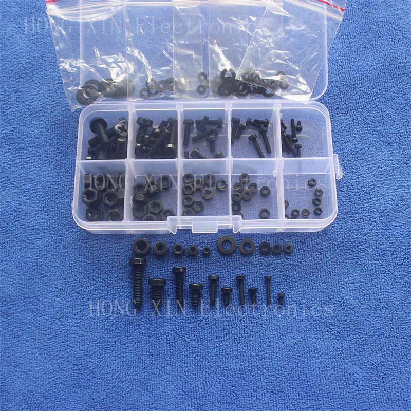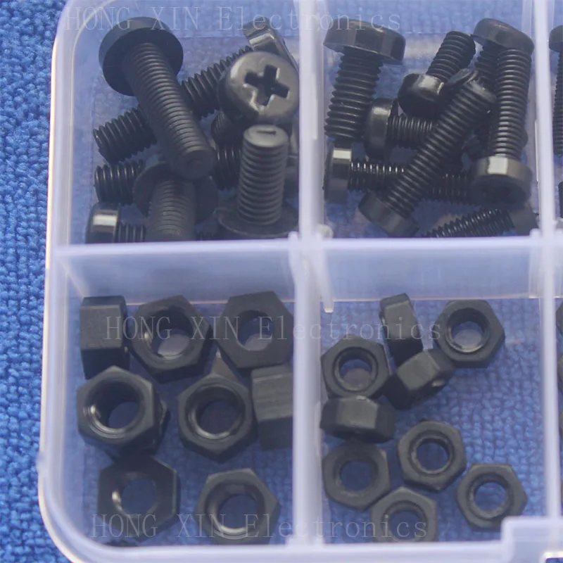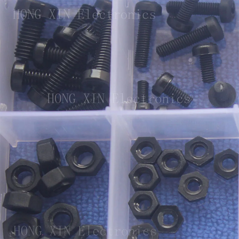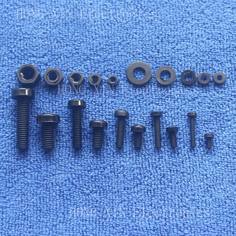 Набор нейлоновых гаек M2M2M2M3M4M5, 150 шт., Болт шестигранный винт, черная шайба, пластиковая гайка
