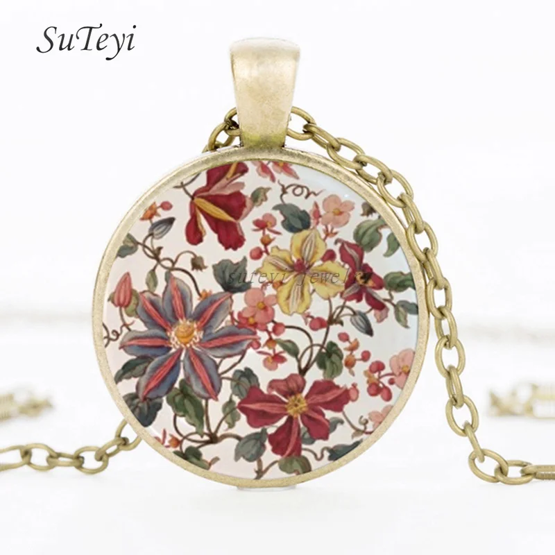 SUTEYI, модные хна Йога ожерелье Винтаж мандала цветок стекло кабошон подвеска заявление ожерелье для женщин ювелирные изделия