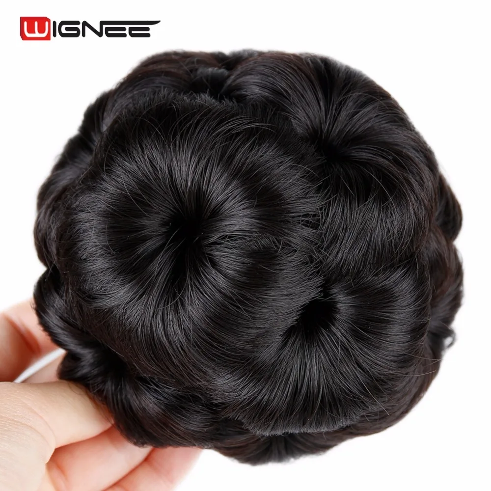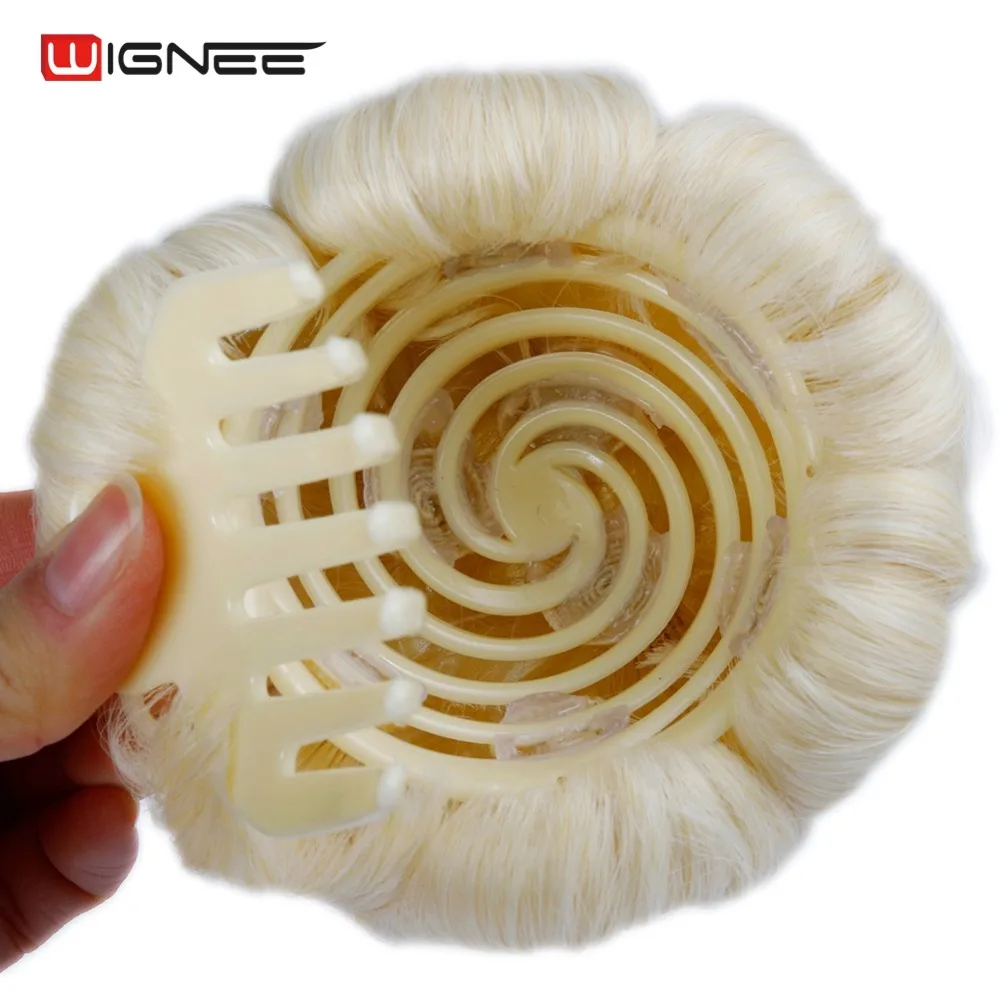 Пончик-шиньон Wignee для пучка волос с пластиковым гребнем для женщин, высокотемпературная заколка для волос из синтетического волокна, эластичные накладные волосы