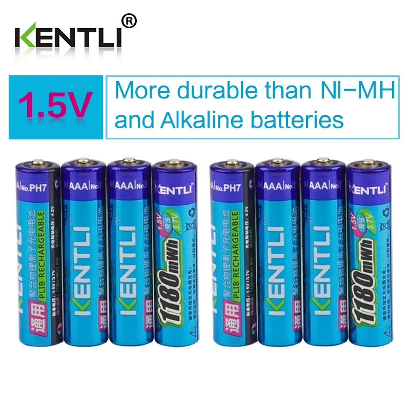 KENTLI 8 шт. без эффекта памяти 1,5 В 1180mWh AAA Полимерные литий-ионные аккумуляторные батареи aaa