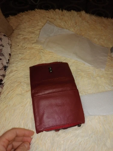 Кошелёк мне понравился, сделан качественно, мягкий на ощупь, пахнет действительно натуральной кожей..Очень много отделений, думаю будет удобно пользоваться им. Спасибо продавцу, доставка быстрая. Посмотрим сколько прослужит.
