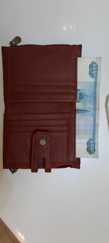 Хороший кошелёк. Рубли помещаются легко. Только непонятно что за кожа. Есть легкий запах. Не критично. Доставка оч быстрая до СПб