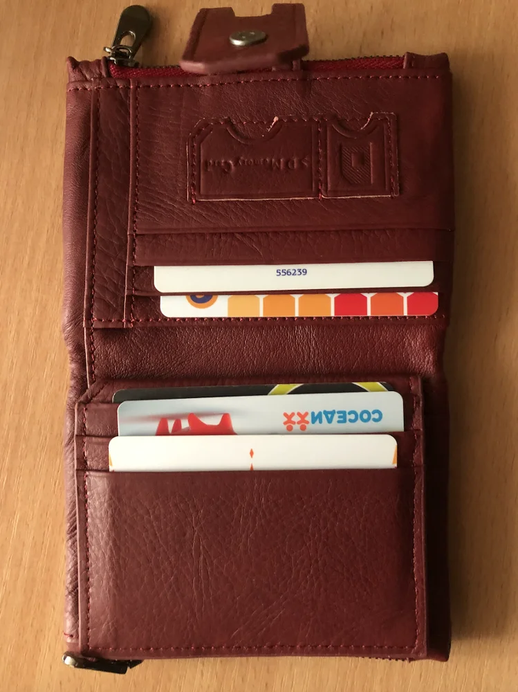 Отличный кожаный кошелёк! Все клепки и молнии работают хорошо, сделан качественно. По бокам кармашки на молнии отдельные, удобные, мелочь брать легко. Карточки достаются свободно, но не выпадают. Кожа мягкая и не тонкая, прослужит долго. Спасибо, я долго искала что мне надо, этот кошелёк полностью меня устроил.