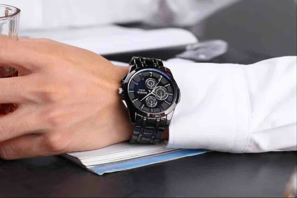 Мужские кварцевые полностью стальные часы, Лидер продаж, роскошные деловые наручные часы хорошего качества из нержавеющей стали, модные часы с круглым циферблатом, Прямая поставка