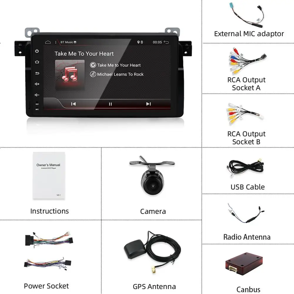 Bosion 9-дюймовый Android 10 для bmw E46,M3, dvd,gps-навигация, Wi-Fi, 4G LTE,BT,canbus, радио, RDS,2 Гб ОЗУ, 1024x600, поддержка DVR,obd2