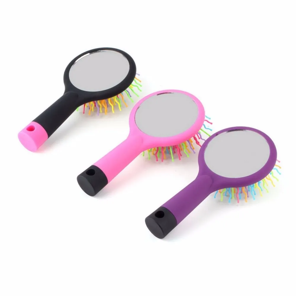 Радужная объемная Антистатическая Волшебная расческа для завитков волос, прямая Массажная расческа, инструменты для укладки с зеркалом
