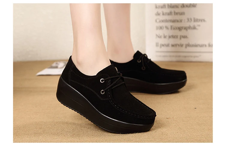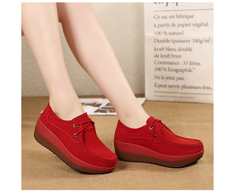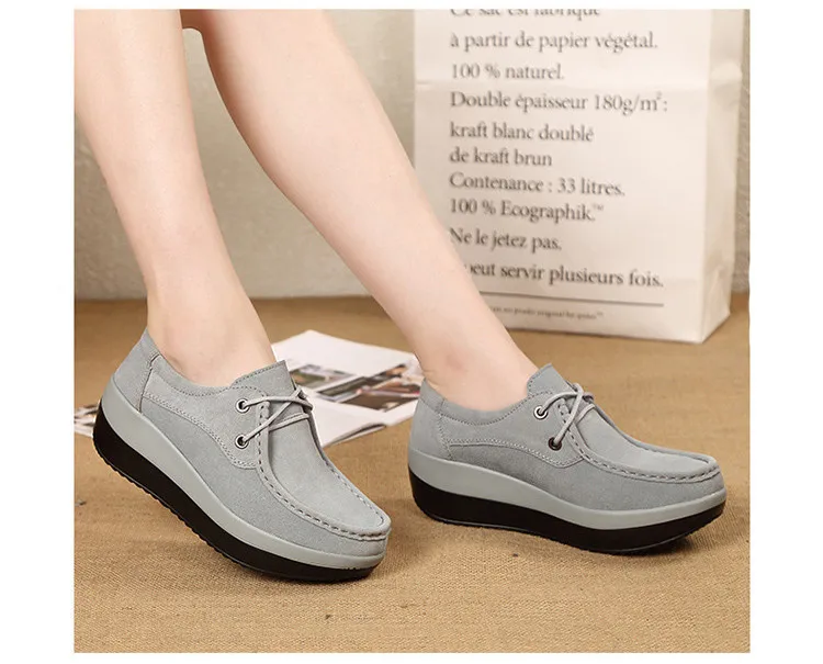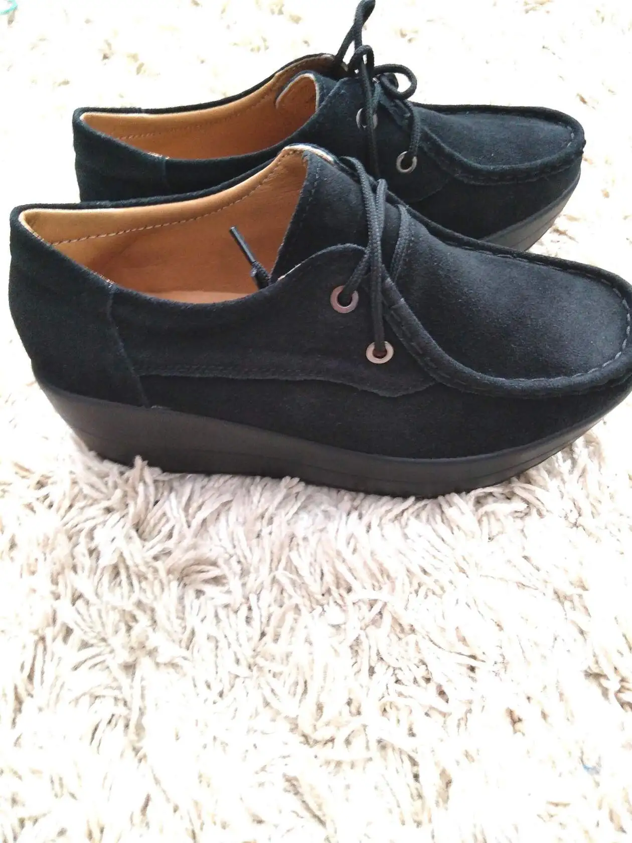 Новая весенне-осенняя женская обувь из коровьей замши, женская обувь на плоской платформе, женские лоферы на шнуровке, женские кроссовки на толстой подошве