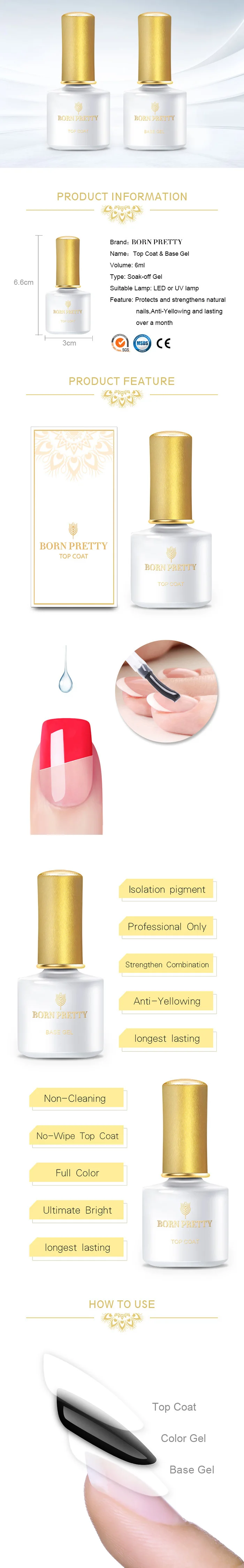УФ-гель для ногтей BORN PRETTY, Базовое покрытие, не протирается, стойкий, блестящий, замачиваемый Топ, база, лак для ногтей, маникюр