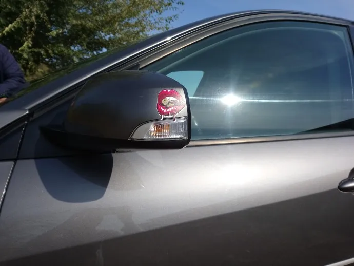 Даже не подумал, что на тёмной машине тёмную наклейку не будет видно.