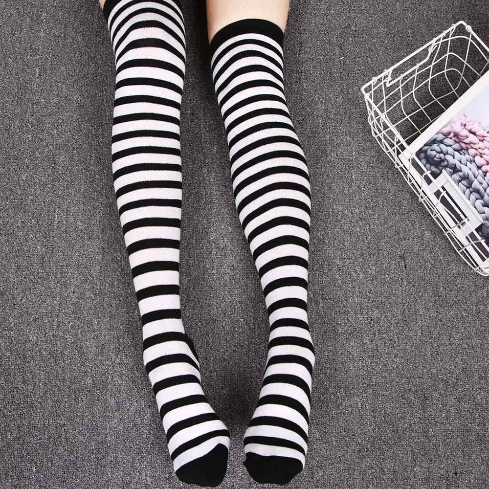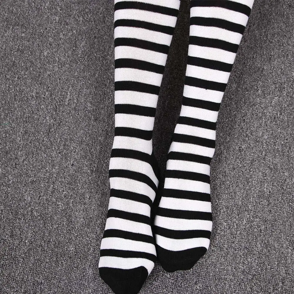 Гольфы женские хлопковые, черные, белые, в полоску, на осеньзиму