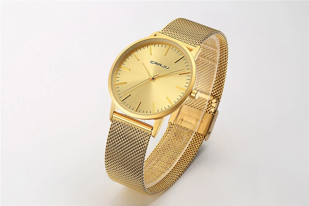 CRRJU мужские золотые часы, мужские часы с сетчатым ремешком из нержавеющей стали, Кварцевые Золотые тонкие наручные часы для мужчин, лучший бренд, роскошные повседневные часы, часы в подарокRelojes para hombre