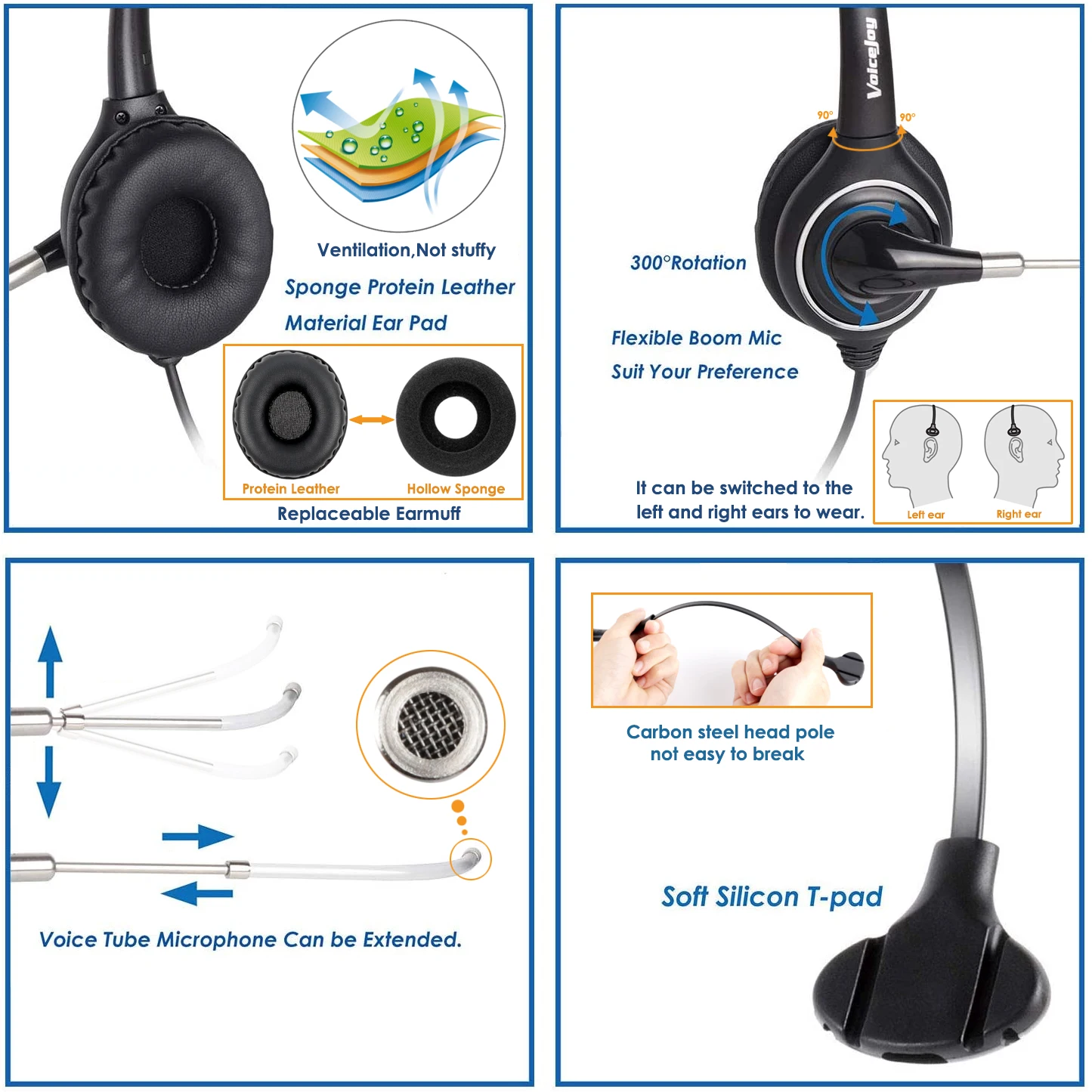 Бинауральный микрофон с шумоподавлением, колл-центр, гарнитура RJ9R...