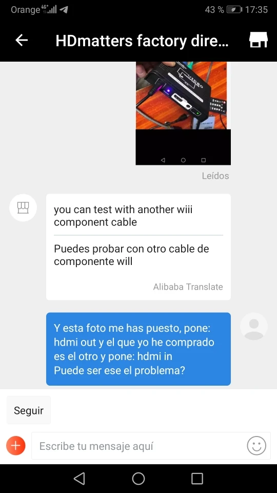 Хотя я купил тот, который не был, и купил Кабель hdmi хорошо, этот продавец почти сделал меня покупать компоненты кабеля хорошо, если вы не вернете деньги или не читаете, или переводчик очень плохой, Все время мне нужно было отвечать на одно и то же, и даже я винила ошибку, если я выслушу вас, я потратил 80 евро на оригинальные компоненты кабеля ни за что, очень недоволен.