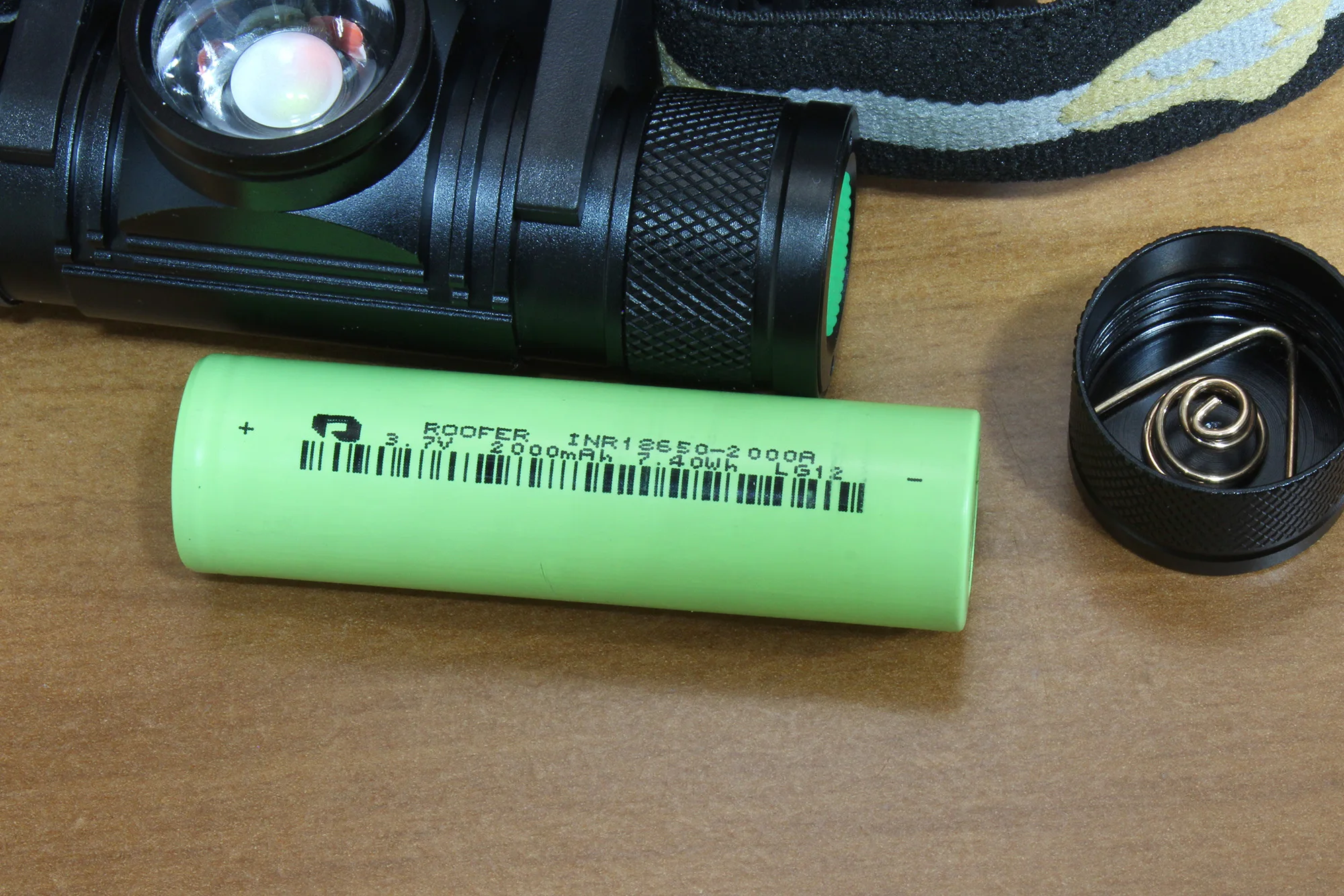 Около недели фонарик болтался в Гноконге. Посылка пришла через 24 дня после заказа. Мягкий пакет в пупырчатой плёнке. Вес пакета 130 граммов. В комплекте фонарь и коротенький кабель USB-MicroUSB. Внутри фонаря аккумулятор Roofer INR18650-2000A 3,7V 2000mAh 7.40Wh LG12 (соответствует заказу), запечатан в плёнку. Всё в целости и сохранности. Сорвал плёнку, вставил аккумулятор разными сторонами - не горит, а обозначений полюсов на корпусе нет (правильно - минусом наружу). Проверил напряжение аккумулятора вольтметром - 3,75 В. Покрутил крышечку, чтобы немного протёрлось чёрное оксидирование, закрутил её потуже и фонарик загорелся. Два нажатия кнопки с интервалом 0,5 секунды включает яркое свечение. Быстрые двукратные нажатия включают мигающие режимы с разной частотой вспышек. Со стороны кнопки открутил вторую крышечку - открылся разъём для зарядки и светодиод. Аккумулятор зарядился от настольного компьютера за час. Покупкой доволен. Рекомендую.