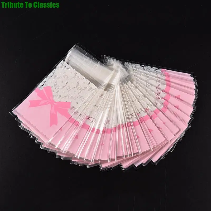 100 шт.лот Симпатичные подарочные пакеты для торта с розовым бантом, пластиковые пакеты для конфет, печенья, принадлежности для свадебвечерние