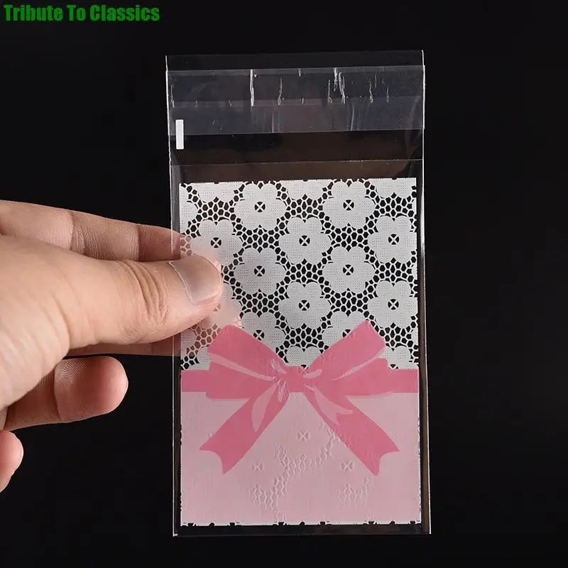 Мини цветок кружева лук подарочная упаковка opp мешок самоклеющиеся сумки конфеты мешок печенье пакеты для печенья 100 шт./лот