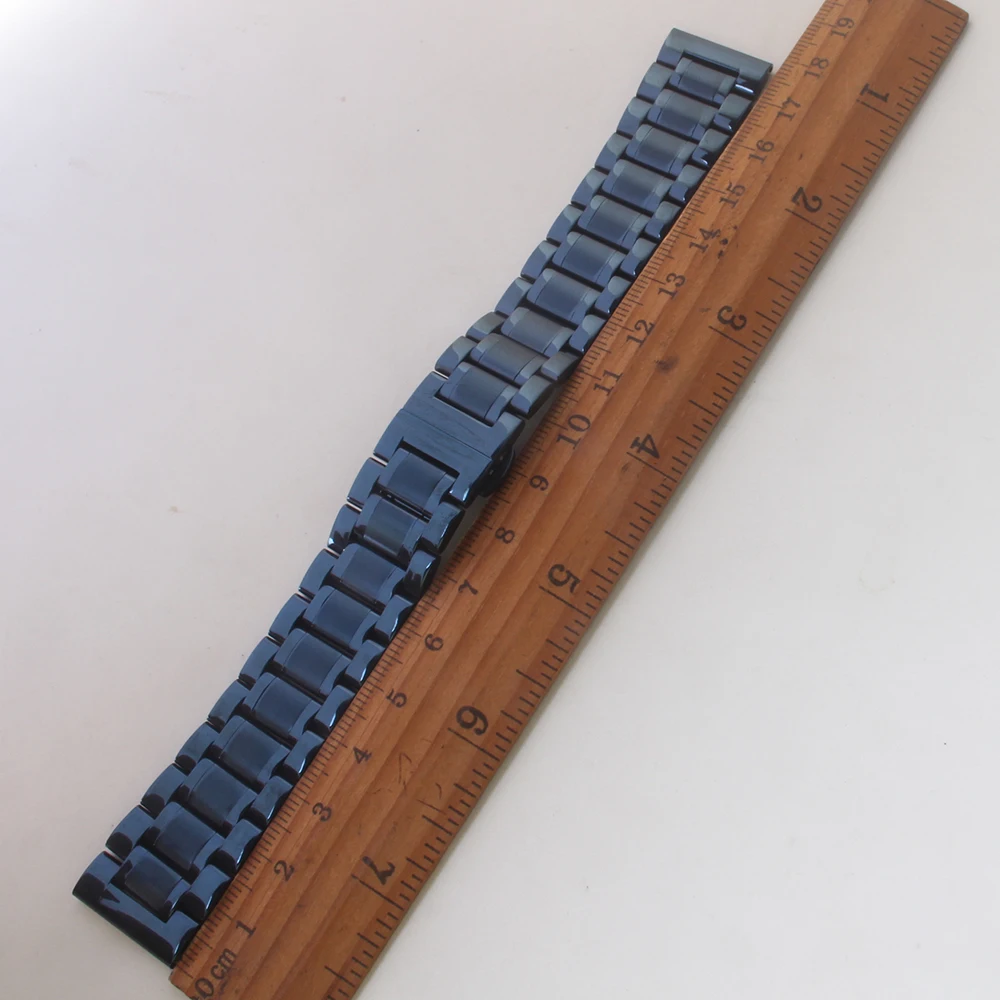 Ремешок из нержавеющей стали для наручных часов, браслет темно-синего цвета для мужчин и женщин, подходит для Gear Galaxy Samsung 20 мм 22 мм, с быстроразъемным штифтом