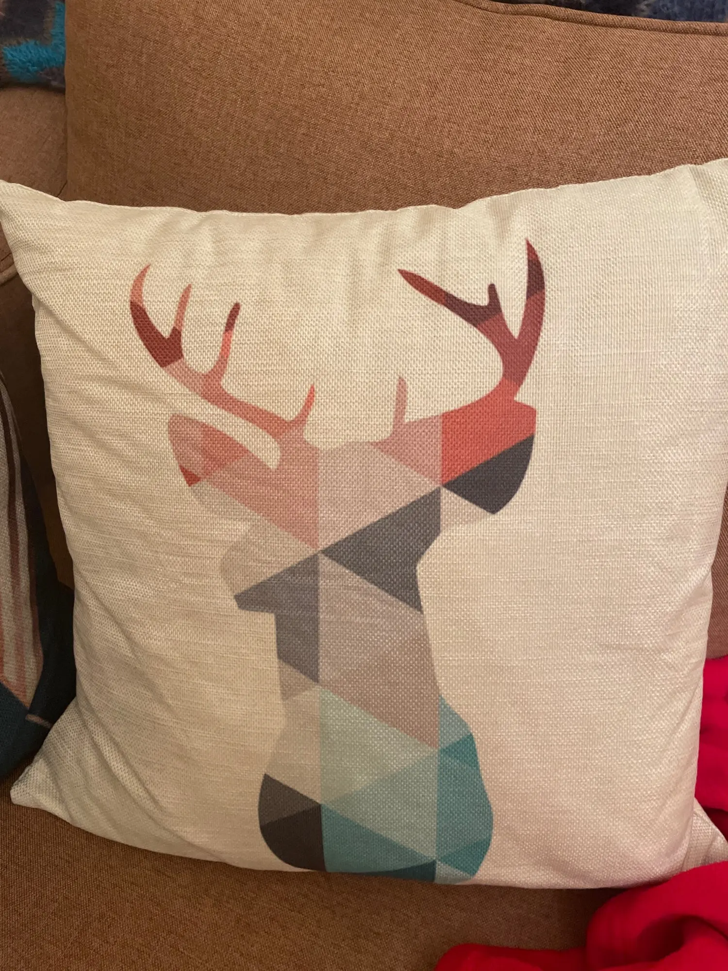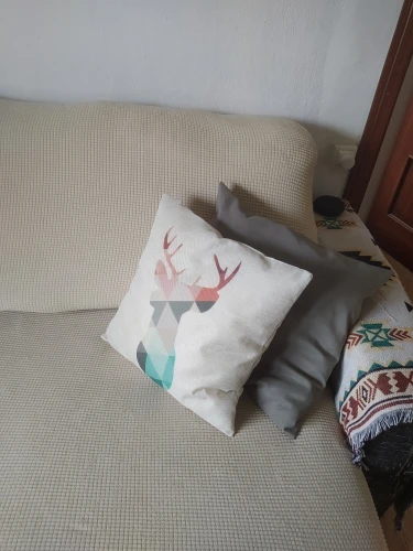 Хорошая наволочка, ткань выполнена в стиле холщевого плетения, жестковата на ощупь, но это так задумано, видимо. Цвет оленя "холодный серый"(немного в синеву), сшита аккуратно, нитки не торчат, все ровненько. Спасибо!