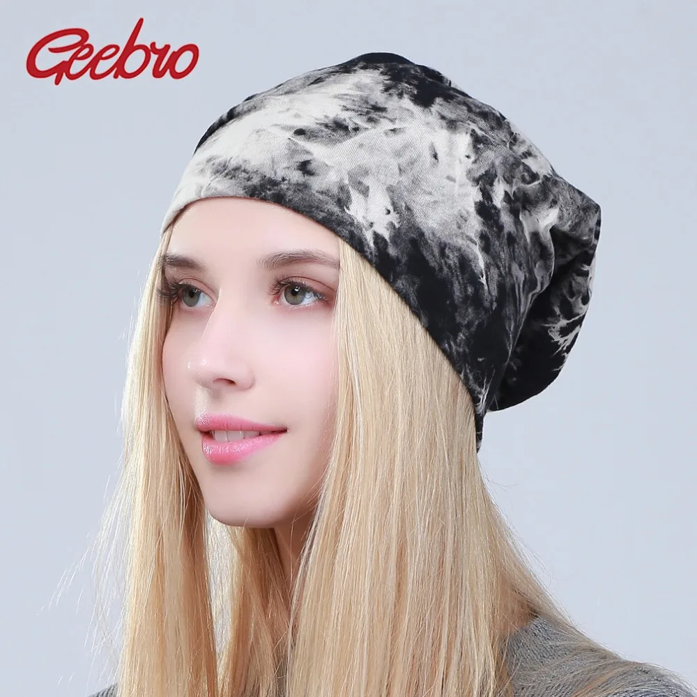 Geebro женская шапка с напуском и краской, Весенняя хлопковая шапка для женщин, женские черные шапки, шапочки для девочек, шапка, Балаклава