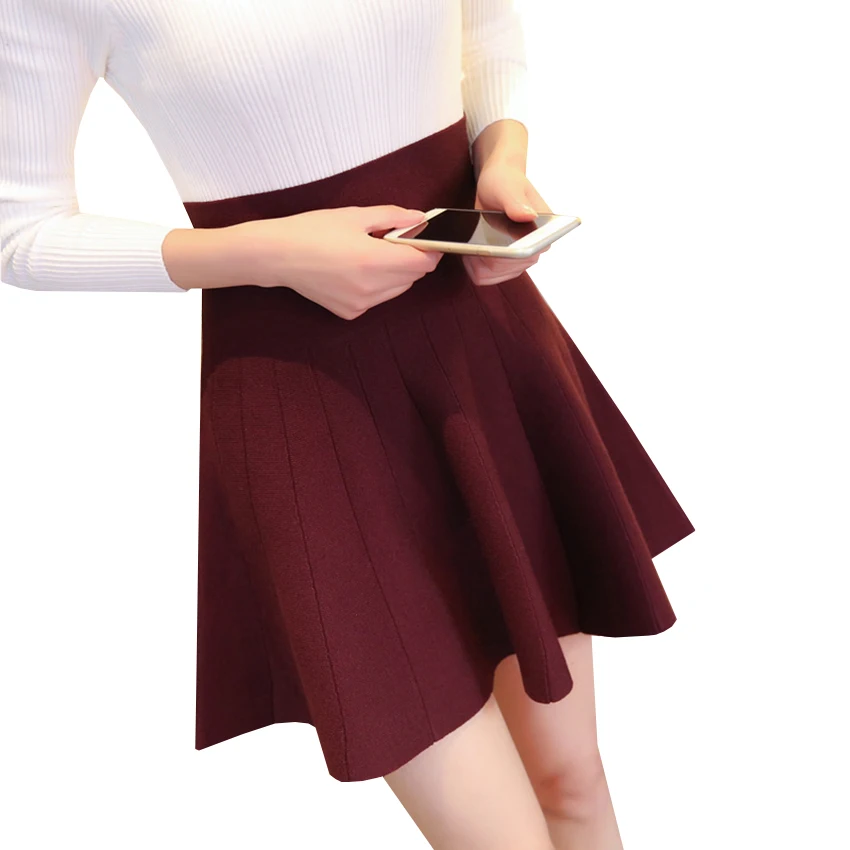 Женская трикотажная юбка с высокой талией, однотонная плиссированная юбка с зонтиком, эластичная мини-юбка на осень и зиму, AB525
