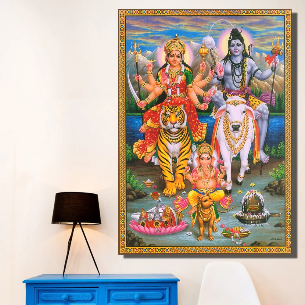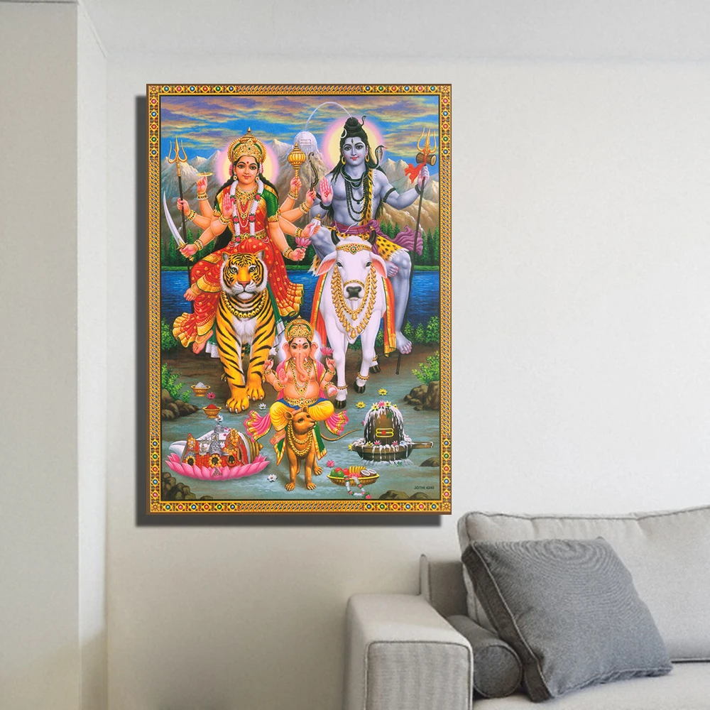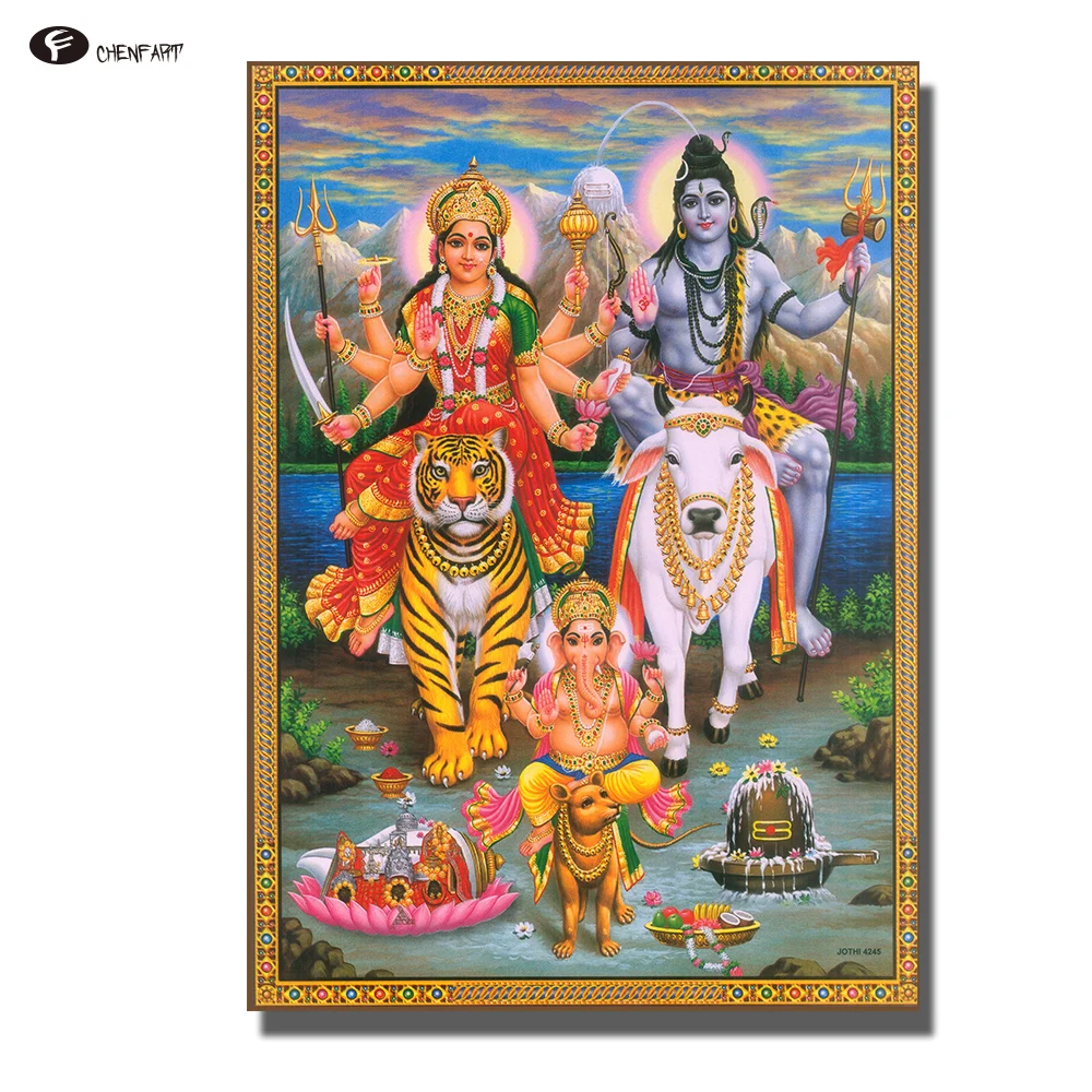 Настенная картина CHENFART, Будда, Шива Парвати, Ганеша, масляная живопись, холст, настенные картины для гостиной, без рамки