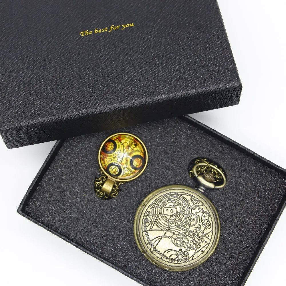 Ретро Античная бронза фильм дизайн карманов делает изделие комплекты с часами для мужчин и женщин, часы, ожерелье с подвеской подарочные наборы