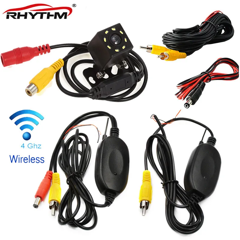 РитмПарковочная Беспроводная Универсальная автомобильная камера заднего вида с 8 светодиодный камерой заднего вида двойной контроль RCA приемник ночного видения и передача