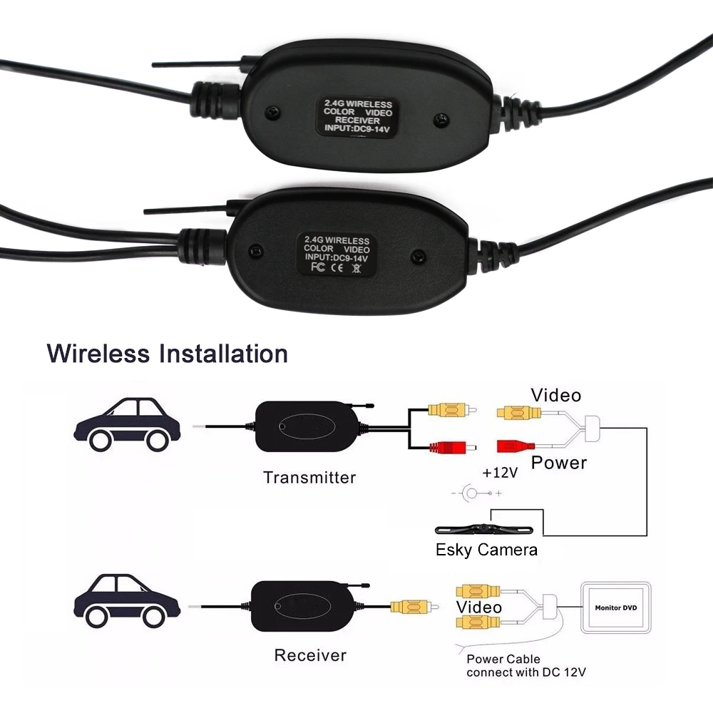Этот беспроводной цветной видеопередатчик 2,4G предназначен для камеры заднего вида вашего автомобиля, что позволяет трансформировать сигнал автомобильной камеры заднего вида на ЖК-дисплей с помощью беспроводной связи 2,4G. Просто Подключите камеру заднего вида с передатчиком и ЖК-дисплеем автомобиля с приемником; У вас будет полностью функциональная беспроводная камера заднего вида. Приемник и передатчик могут питаться от любых транспортных средств постоянного тока 12 В. Комплект беспроводного цветного видеопередатчика-Отличное дополнение к вашему автомобилю.