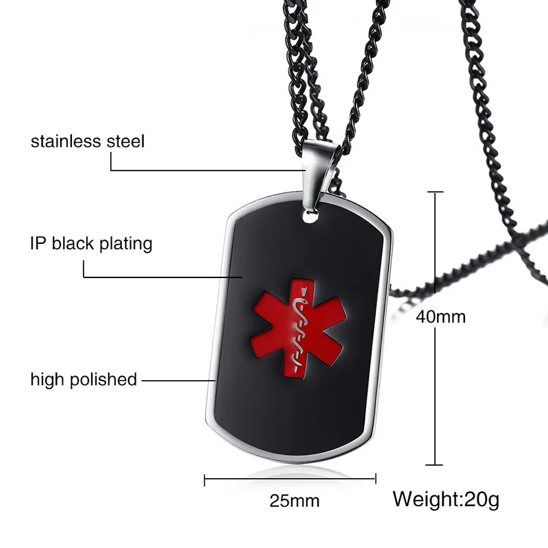 Vnox Black Medical Alert ID унисекс подвес, ожерелье, ювелирные изделия из нержавеющей стали, 24-дюймовая цепочка с бесплатной гравировкой