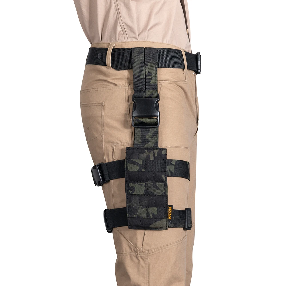 Изготовлен из высококачественного и прочного американского Мультикам 500D Cordura нейлонового материала и пряжки UTX. Тактическая подвеска на ногу molle для прикрепления дополнительной полезной кобуры для пистолета, мешочек для журналов, мешочек для первой помощи, мешочек для фонарика, мешочек для бутылки с водой, мешочки для сброса или любой другой на панели для расширения пространства для хранения.