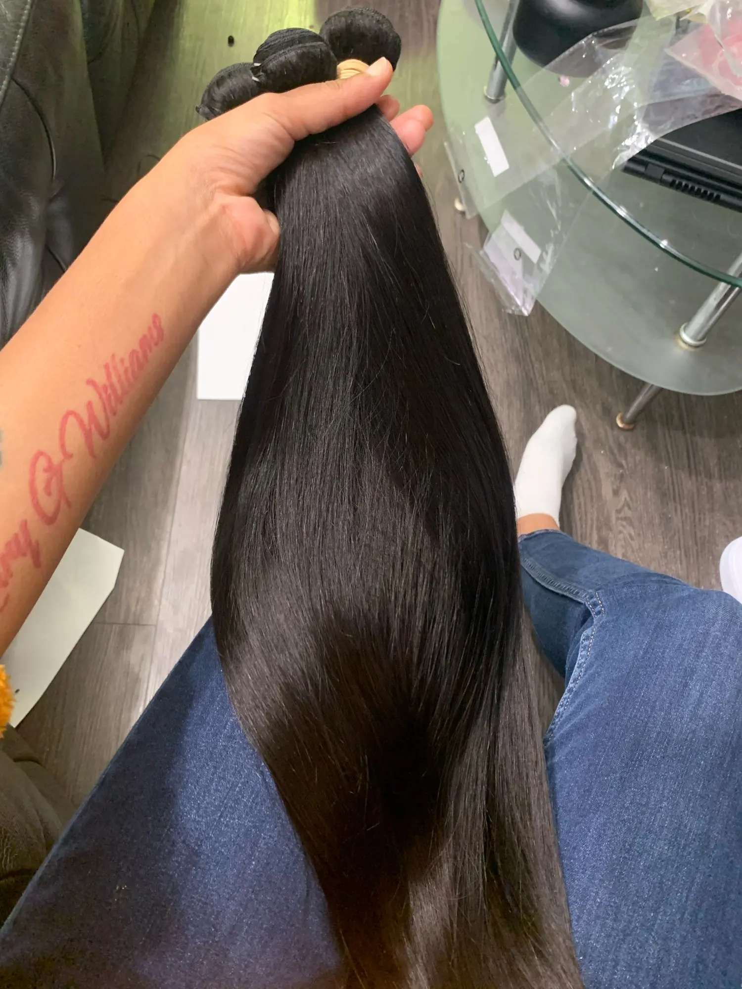 Эти волосы действительно хорошие! Шелковистая, гладкая, не линяет, не тонкая. Я купил 30 дюймов, и он совсем не тонкий. Волосы также появились через пару дней, что было быстрым. Я бы определенно рекомендовал.