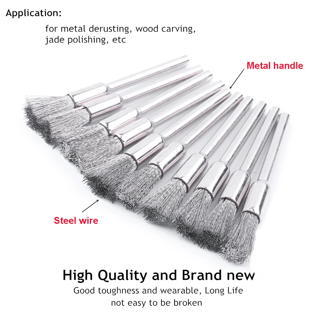 Набор аксессуаров для мини-дрели, сталь щетки колеса провода, 3 Х5 мм, 10 шт., шлифовальные вращающиеся инструменты, кисть, дремель
