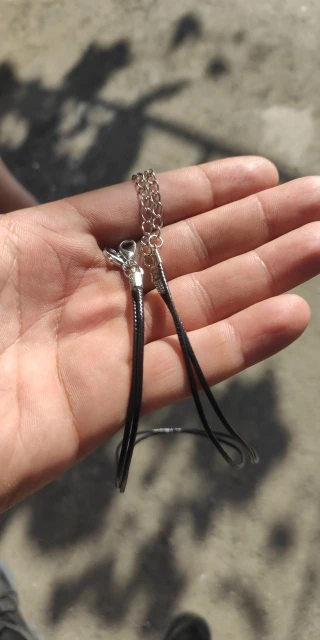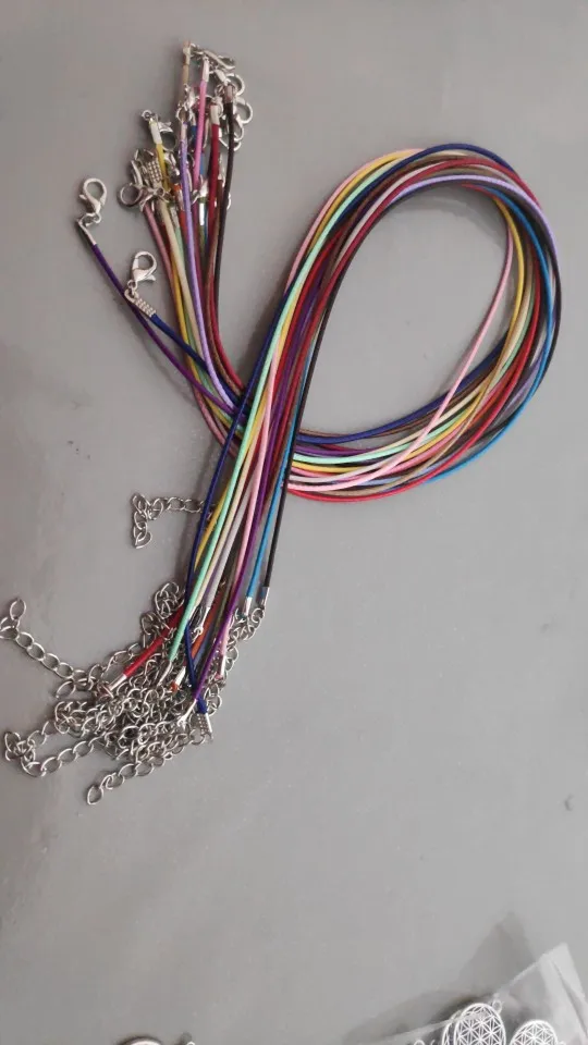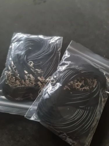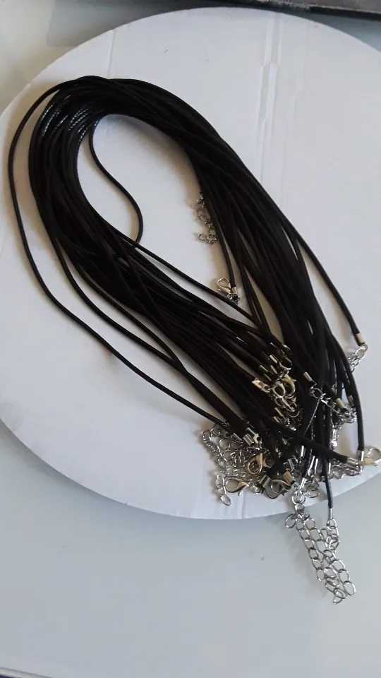 The black leather cords with lobster clasp are very nice, just as photo shown. I am not sure that it is leather but I am okay with it. Quick deliver (only took 15 days). :) Thanks.