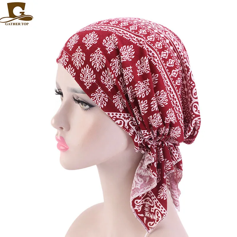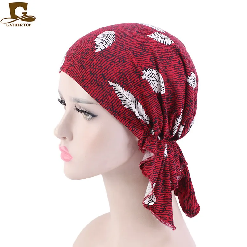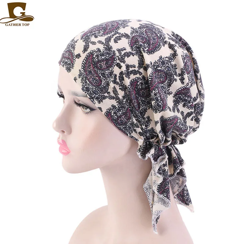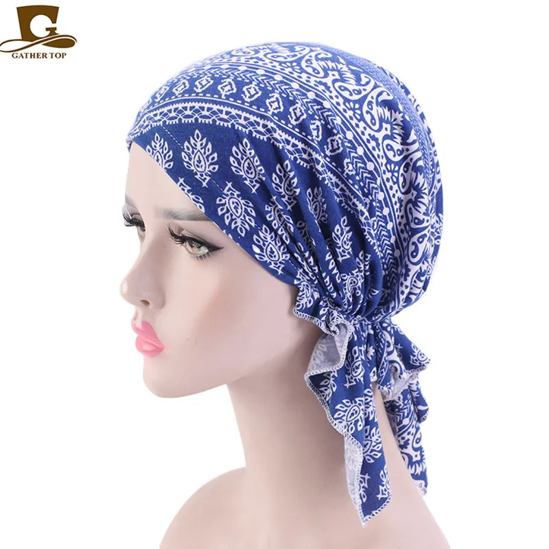 5 шт.лот новинка Женская хлопковая бандана шарф предварительно завязанная шапка Химо шапка бини тюрбан головной убор для пациентов с раком 5 шт. в одной партии